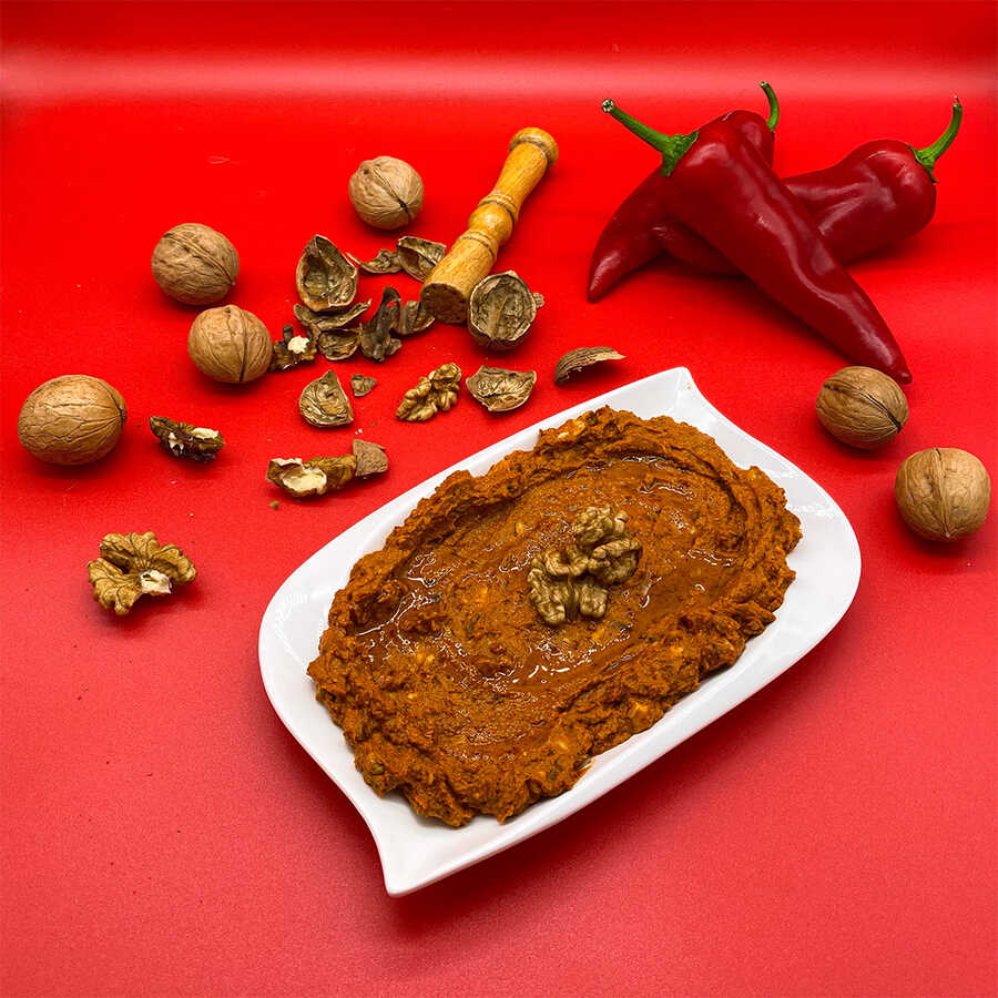 Muhammara olarak da bilinen Cevizli Biber, mevsiminde toplanıp güneşte kurutulan hafif acı biberlerin öğütülmesiyle oluşturulan harca, dövülmüş ceviz içi ve kıvam alana kadar taptaze tahin katılmasıyla hazırlanmaktadır. Her türlü et yemeklerinizin yanı sıra ara öğünlerde ve hatta kahvaltılarda dahi tüketebileceğiniz bu enfes mezemizi mutlaka denemelisiniz.Ürün İçeriği;